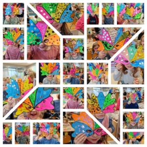 A l’occasion des échanges avec le collège, nous avons fabriqué des masques en nous inspirant de Romero Britto.